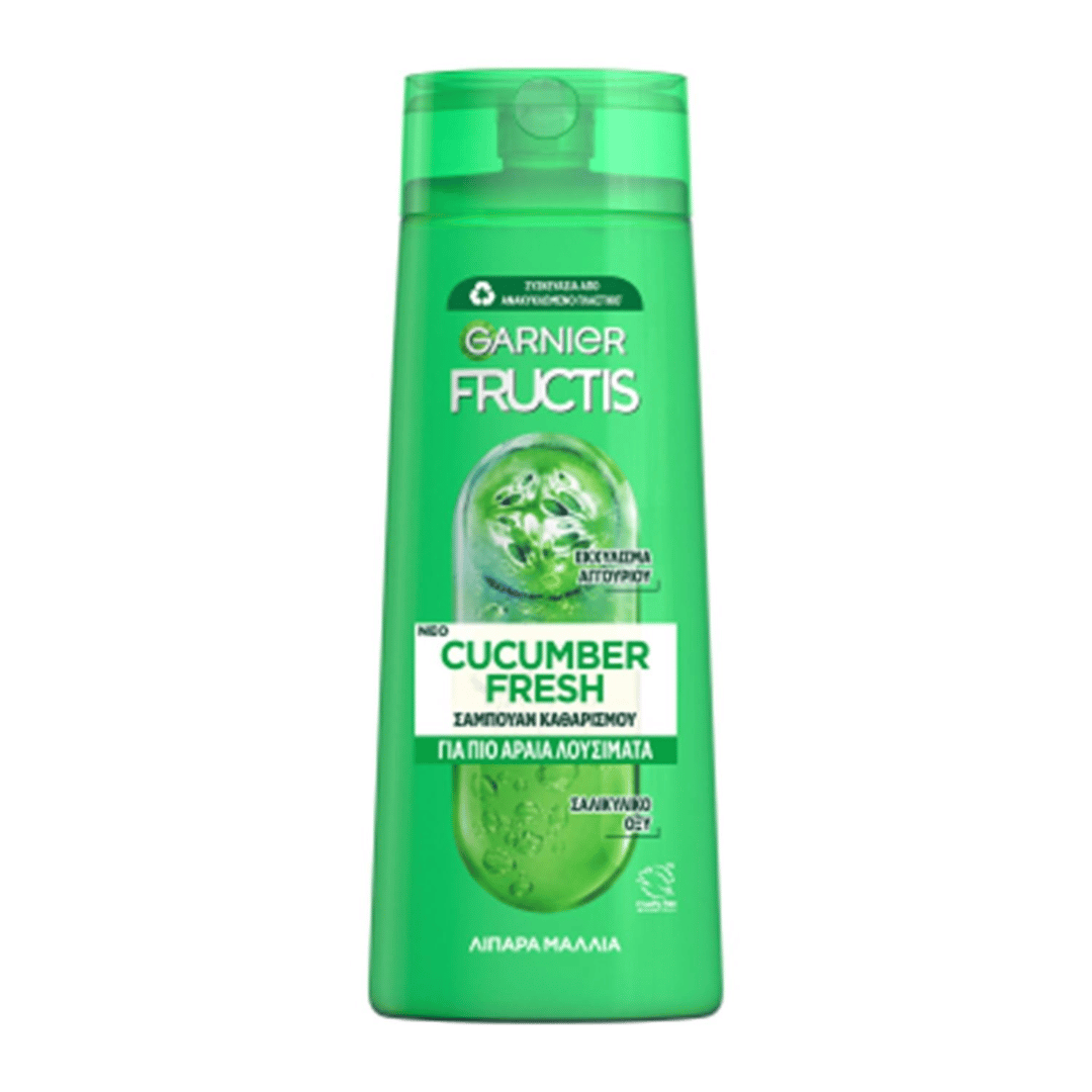 Garnier Fructis Cucumber Fresh Shampoo 400 ml offers a vibrant cleansing experience with cucumber extract and lemon proteins. It deeply purifies oily or quickly greasy hair while strengthening strands and delivering long-lasting freshness.