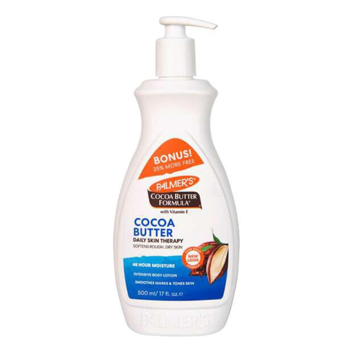 Palmer’s Cocoa Butter Daily Therapy is a luxurious yet non-greasy body lotion designed to soothe and rejuvenate rough, dry skin. The formula blends nutrient-dense cocoa butter, antioxidant-rich vitamin E, emollient-rich oils, and skin-softening petrolatum and dimethicone to create an occlusive barrier that locks in hydration and protects against moisture loss. Clinically, the lotion offers 48-hour moisturization and supports skin healing—making it especially effective for cracked elbows, dry heels, scars, and uneven tone. Gentle and dermatologist-recommended, it’s free from parabens and phthalates, and is vegan-friendly, supportive of skin conditions like eczema and ideal for daily, head-to-toe care.